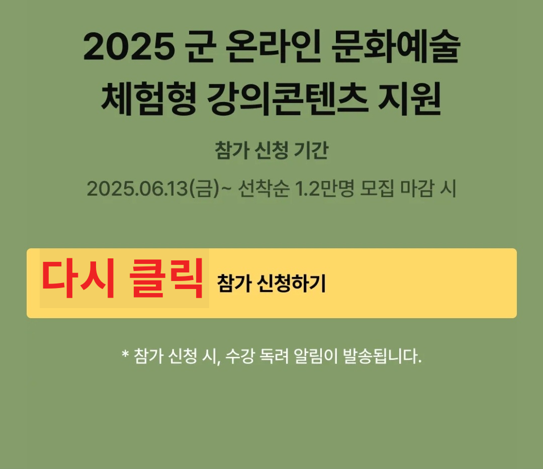 이 글은 2025년 "군 온라인 문화예술 체험형 강의 콘텐츠 지원"을 기준으로 합니다.