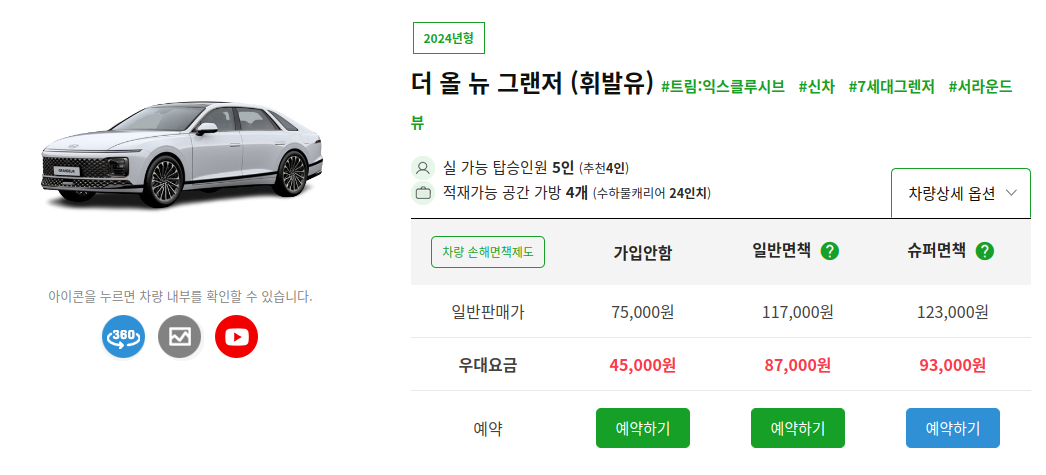 (2) 차량 선택_차량 손해면책제도를 선택합니다