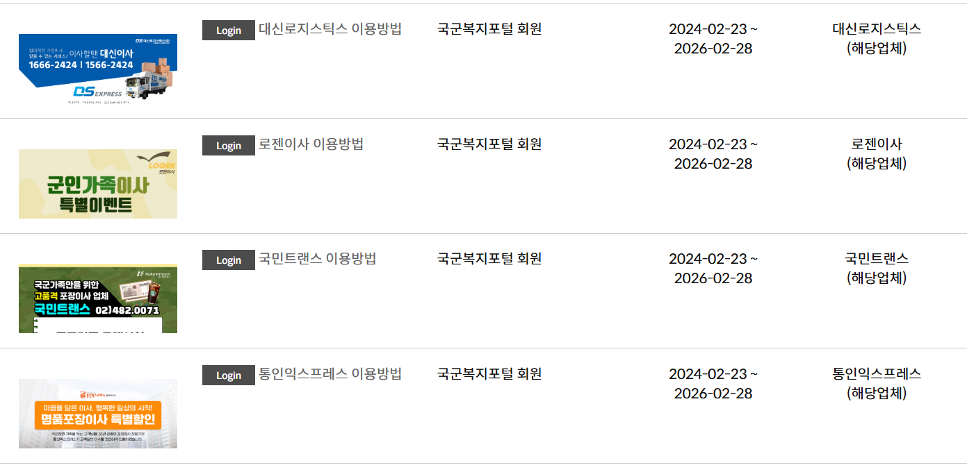 2-5) 기타 군인할인 리스트