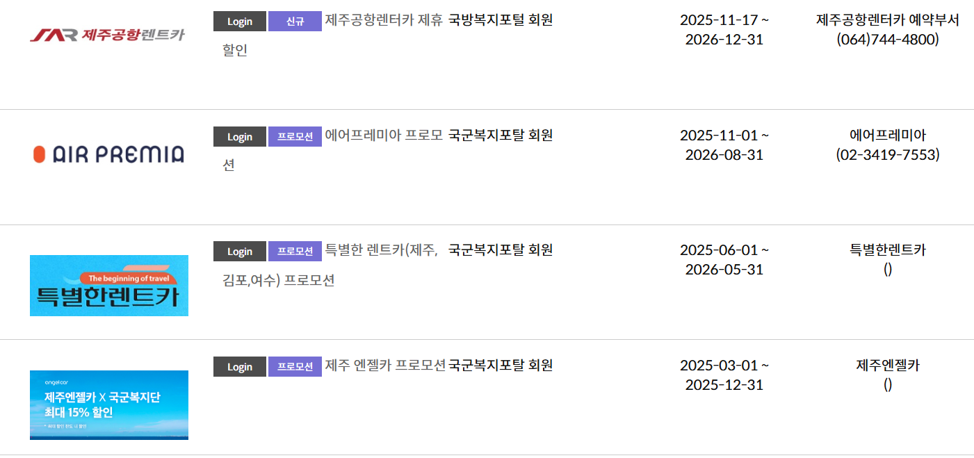 2-2) 렌트카 군인할인 리스트