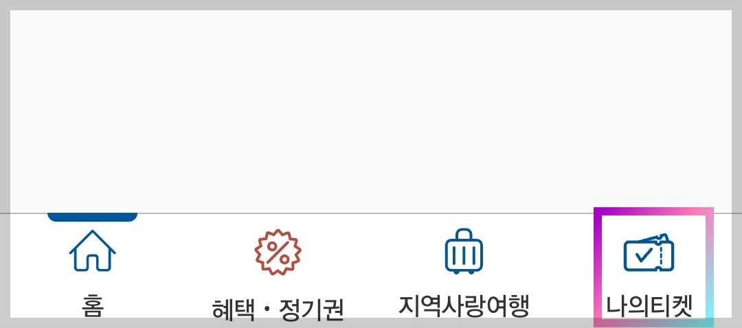 1) 코레일톡 오른쪽 하단에 "나의 티켓"을 선택합니다